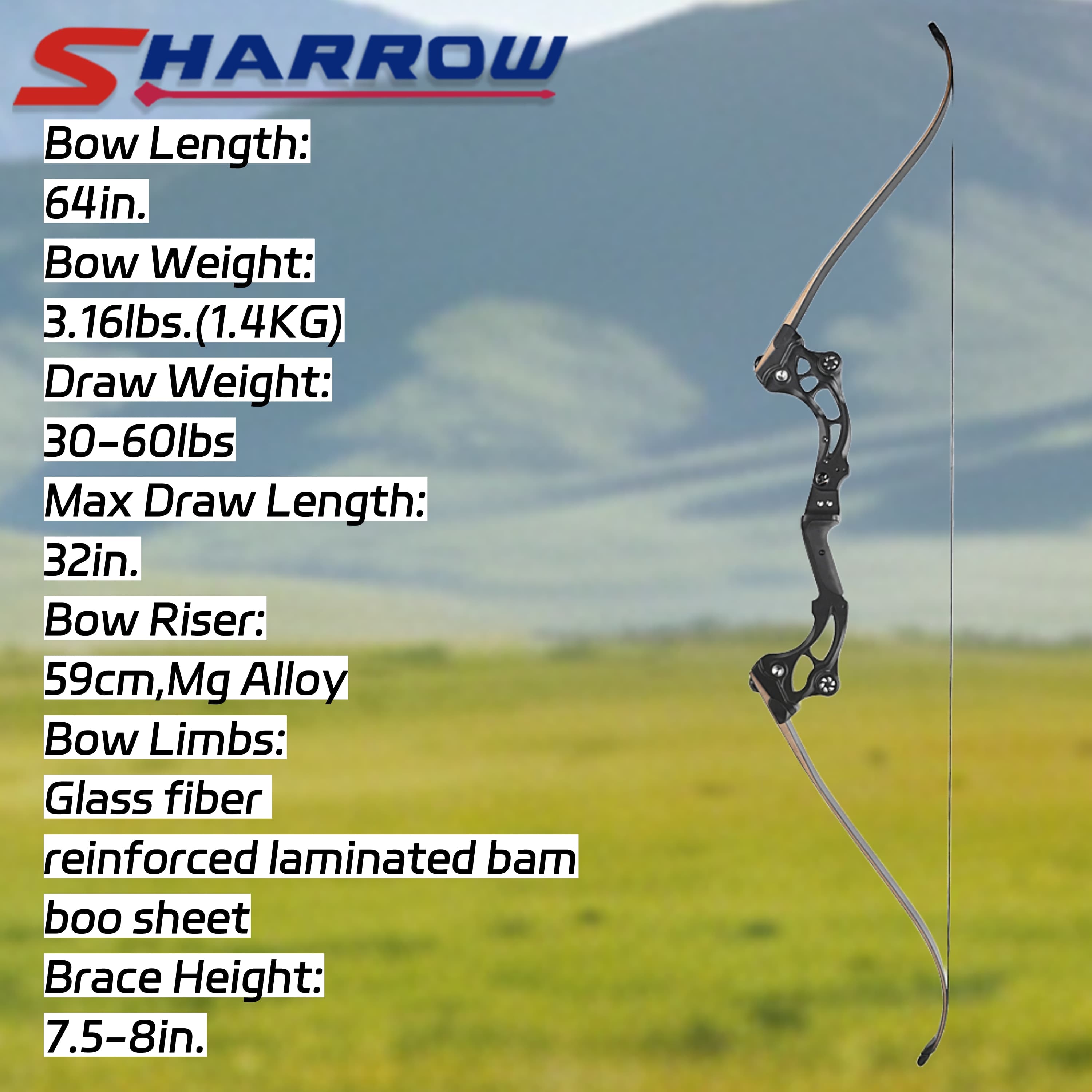 High-Performance Laminated Limbs: Features limbs made of bamboo and fiberglass laminate, a combination known for its resilience, energy efficiency, and ability to deliver fast arrow speeds with minimal hand shock.