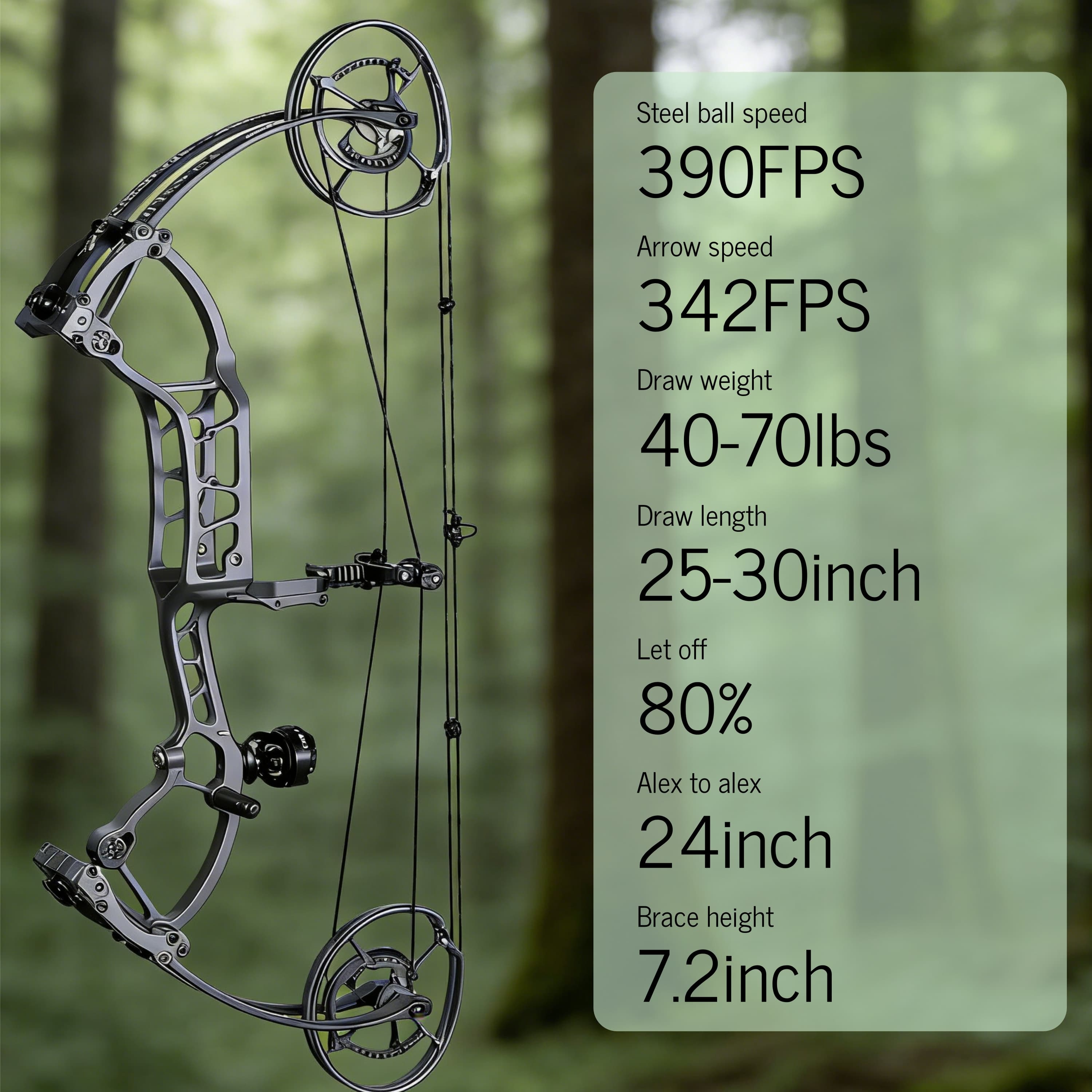 • The 7.2-inch brace height design allows for a smooth draw, even with the compact axle-to-axle length.