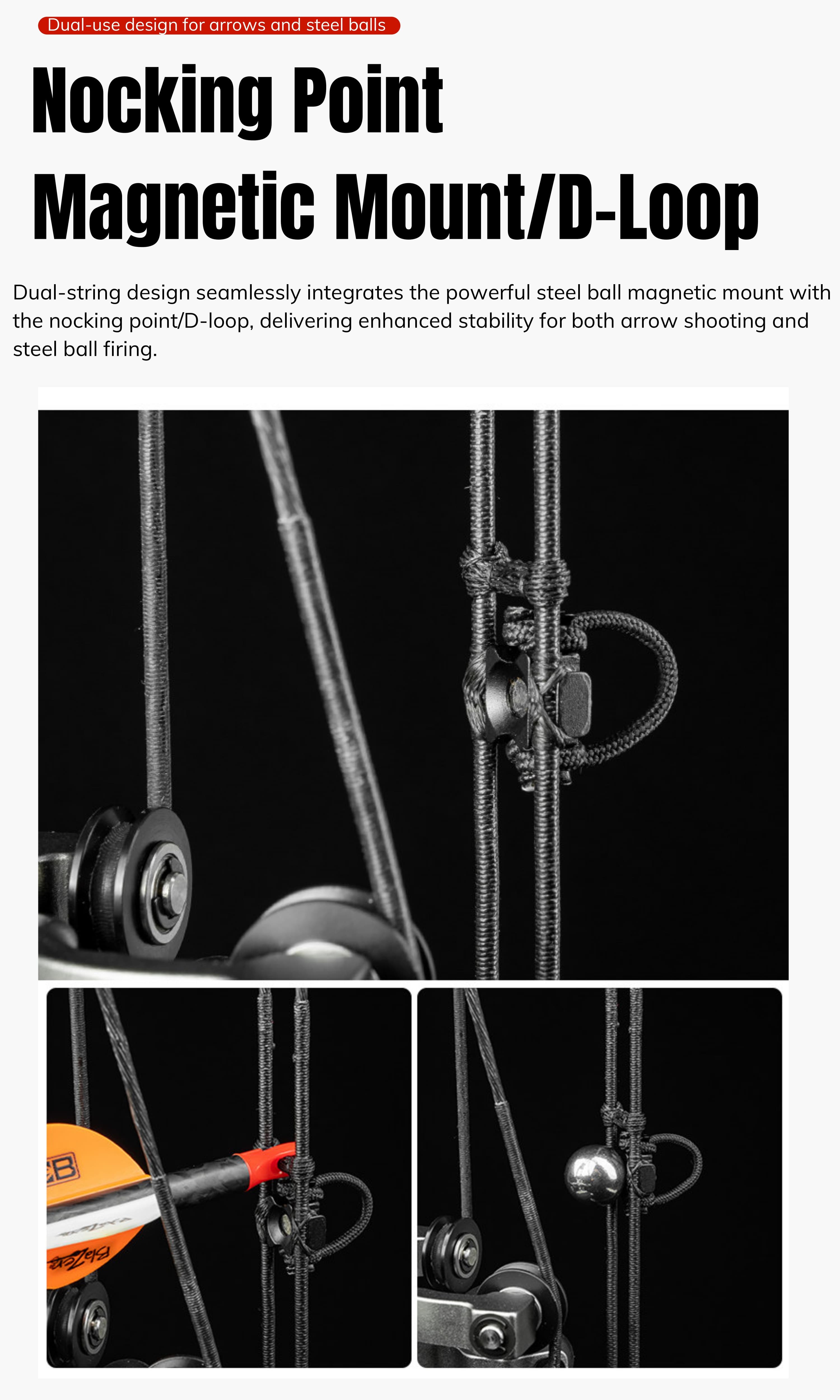 • The recessed shooting design of the string stopper ensures compatibility with various arrow rests.
