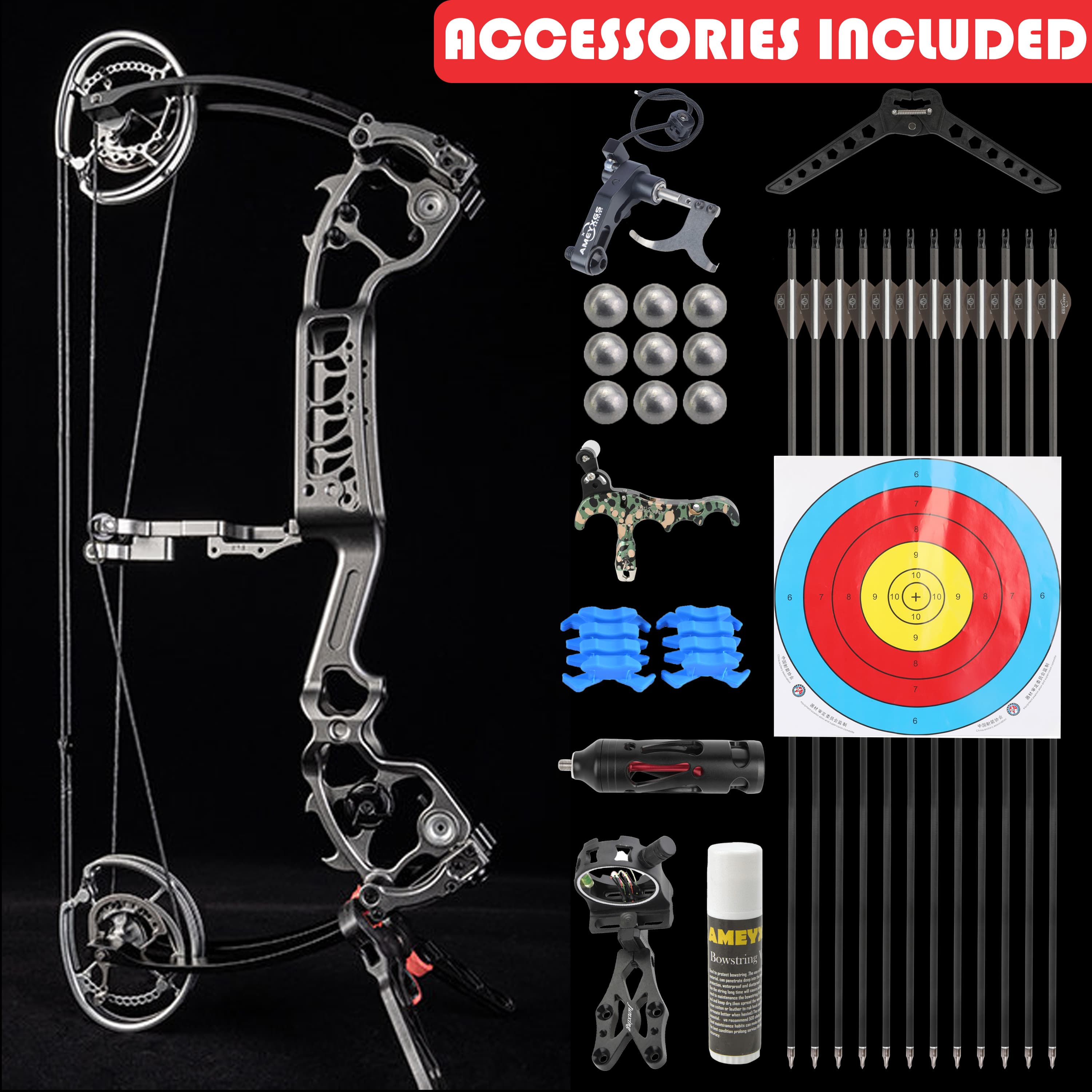 • Standard blood wheel eye shock absorption, increases weight while reducing bow body vibration, more stable force.