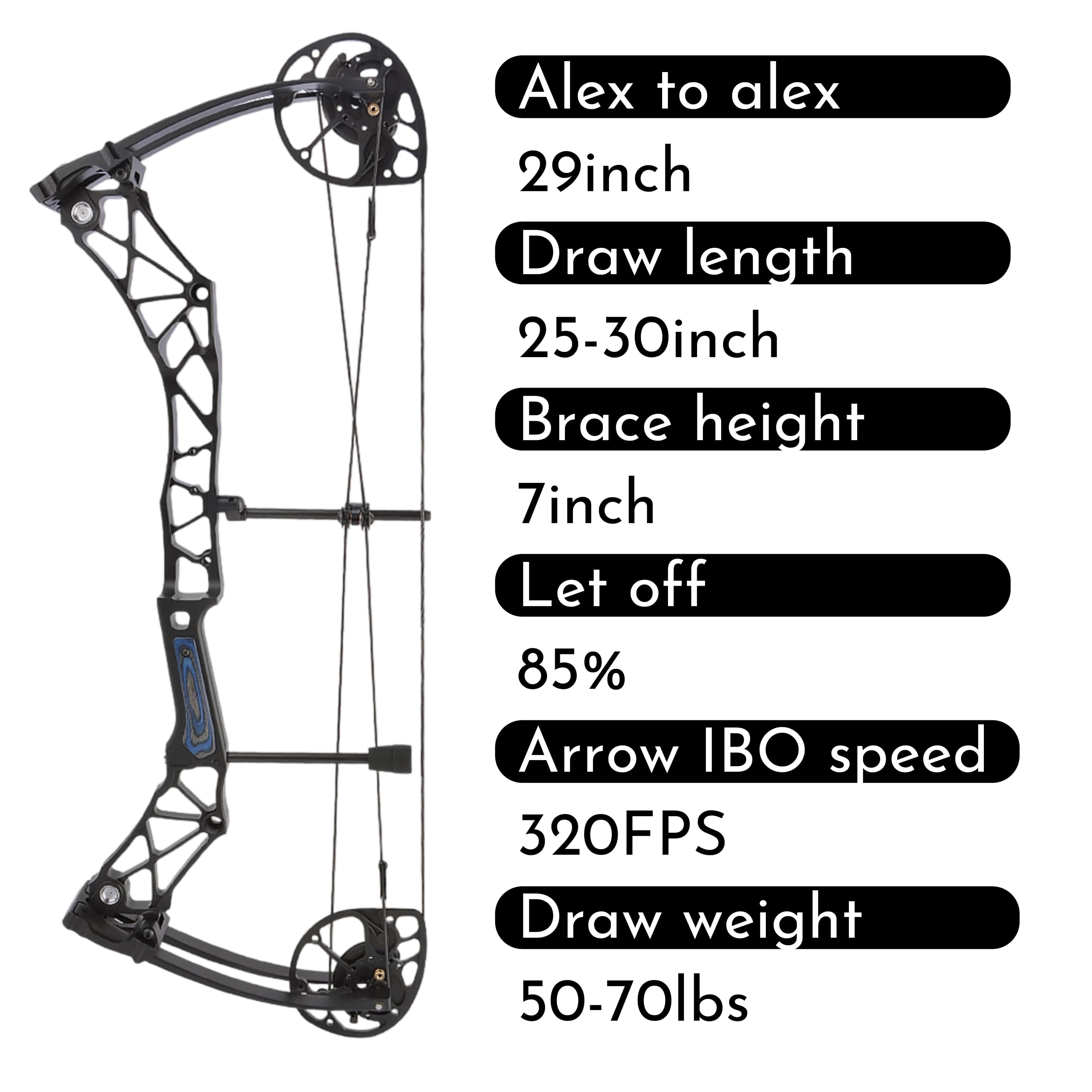 Achieves an IBO-rated arrow speed of 320 FPS combined with an adjustable draw length of 25-30 inches. This ensures powerful, flat-shooting trajectories for superior long-range performance and accuracy.