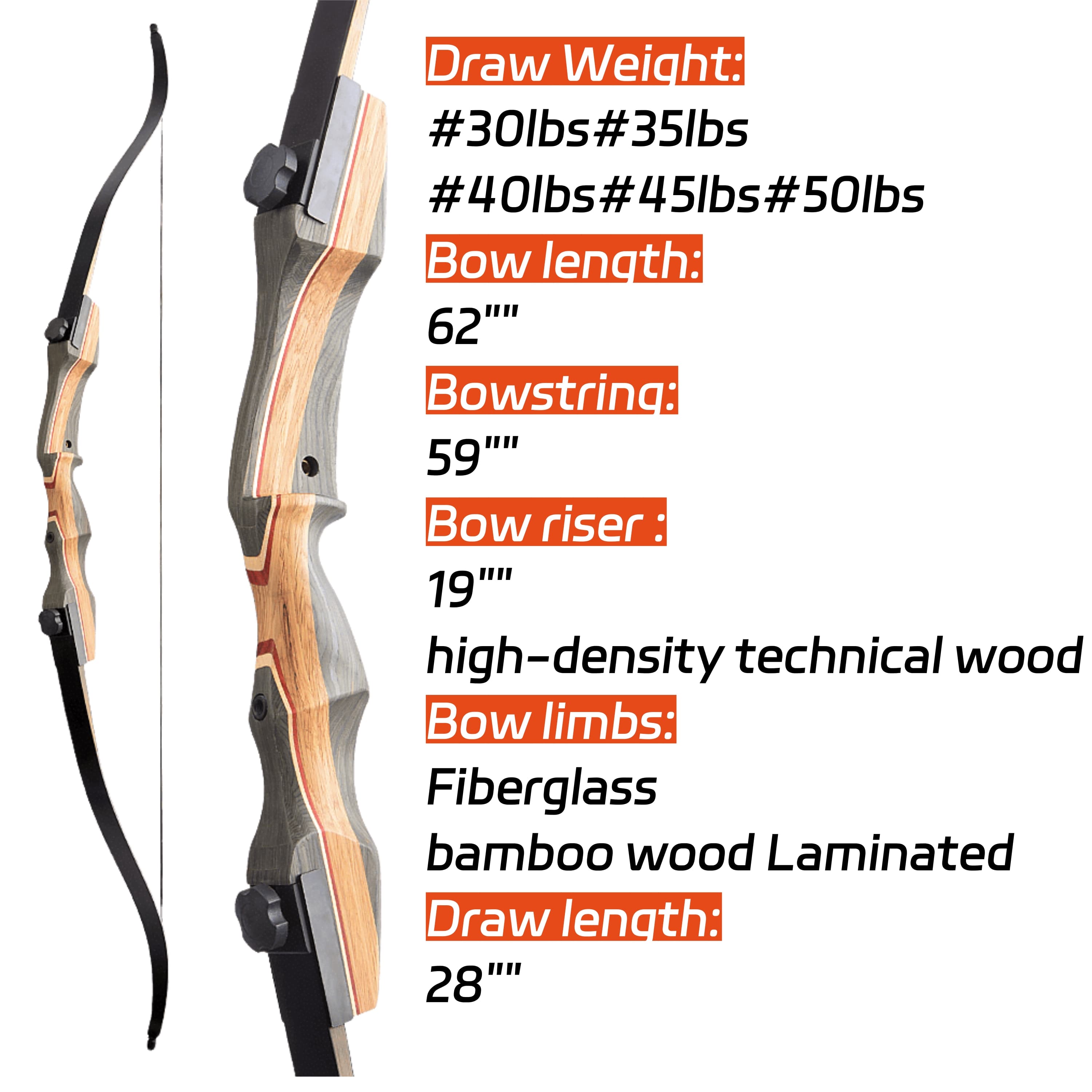 • High-Performance Composite Construction: Combines a high-density technical wood riser with fiberglass-bamboo laminated limbs. This synergy delivers an optimal balance of lightweight handling, durable strength, and a smooth, efficient energy transfer for consistent arrow speed.