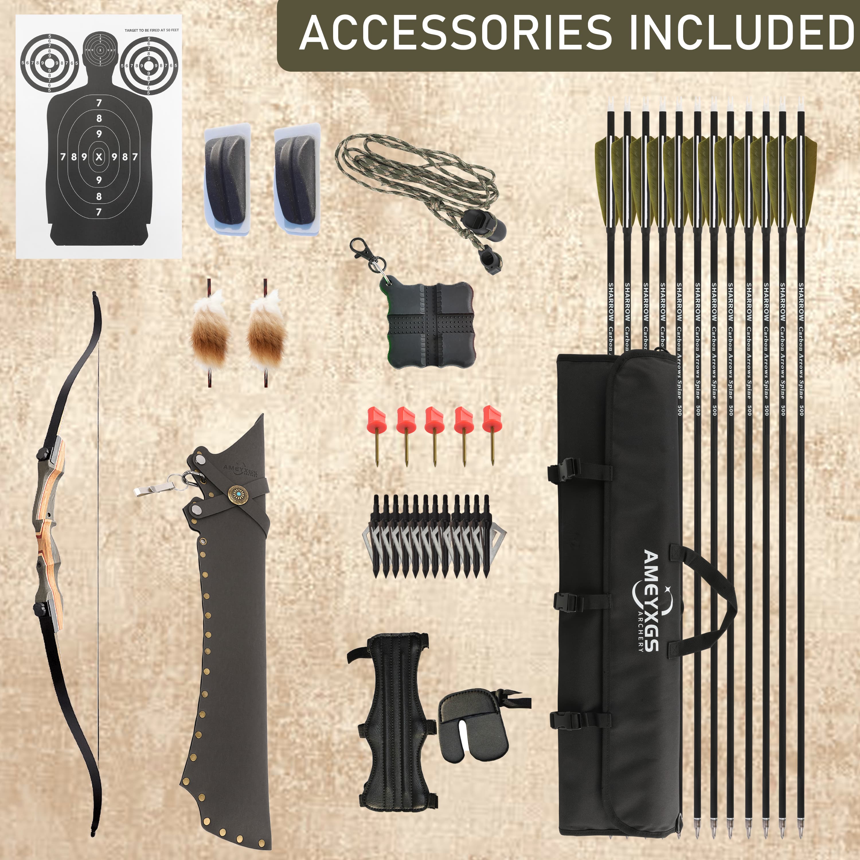 • Complete Professional Hunting Package: This all-inclusive kit is curated for the serious hunter. It provides everything needed for both practice and the field, including 12 carbon target arrows, 12 blade broadheads, a quiver, silencing accessories, and essential tools.