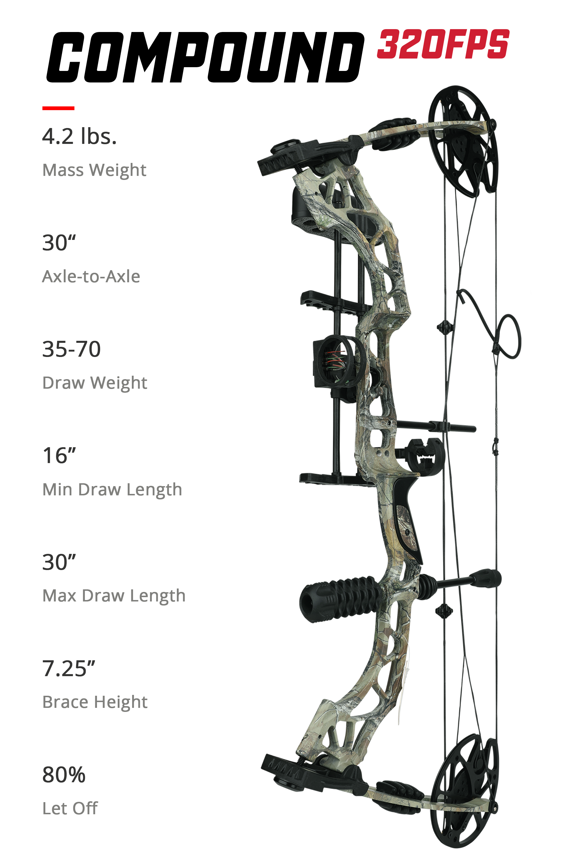 • 80% let-off and 320 FPS speed for powerful, stable shooting