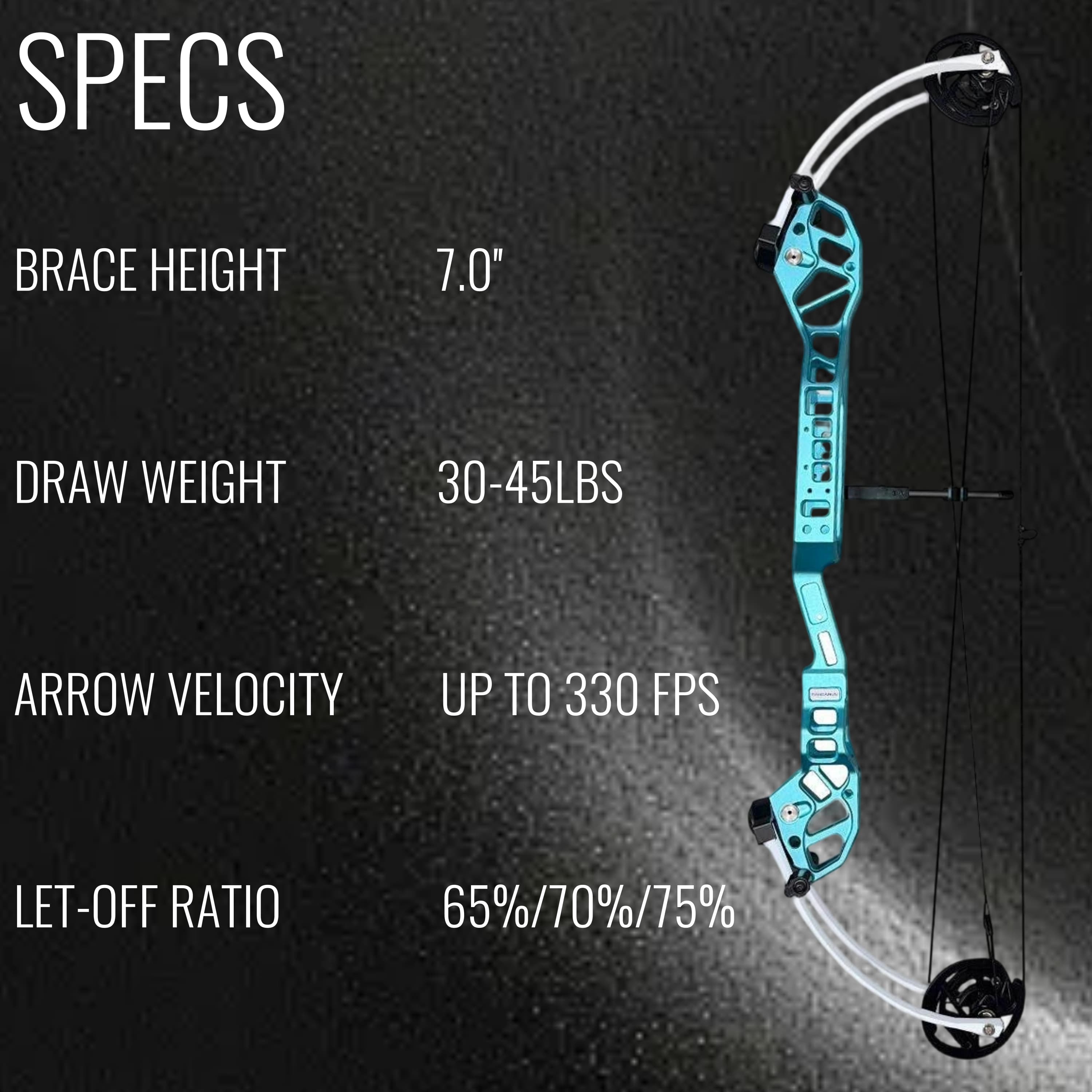 • Adjustable Let-Off (65%, 70%, 75%): Personalize your shooting experience with adjustable let-off settings, optimizing draw power and shot accuracy while reducing fatigue for a smoother shot cycle.