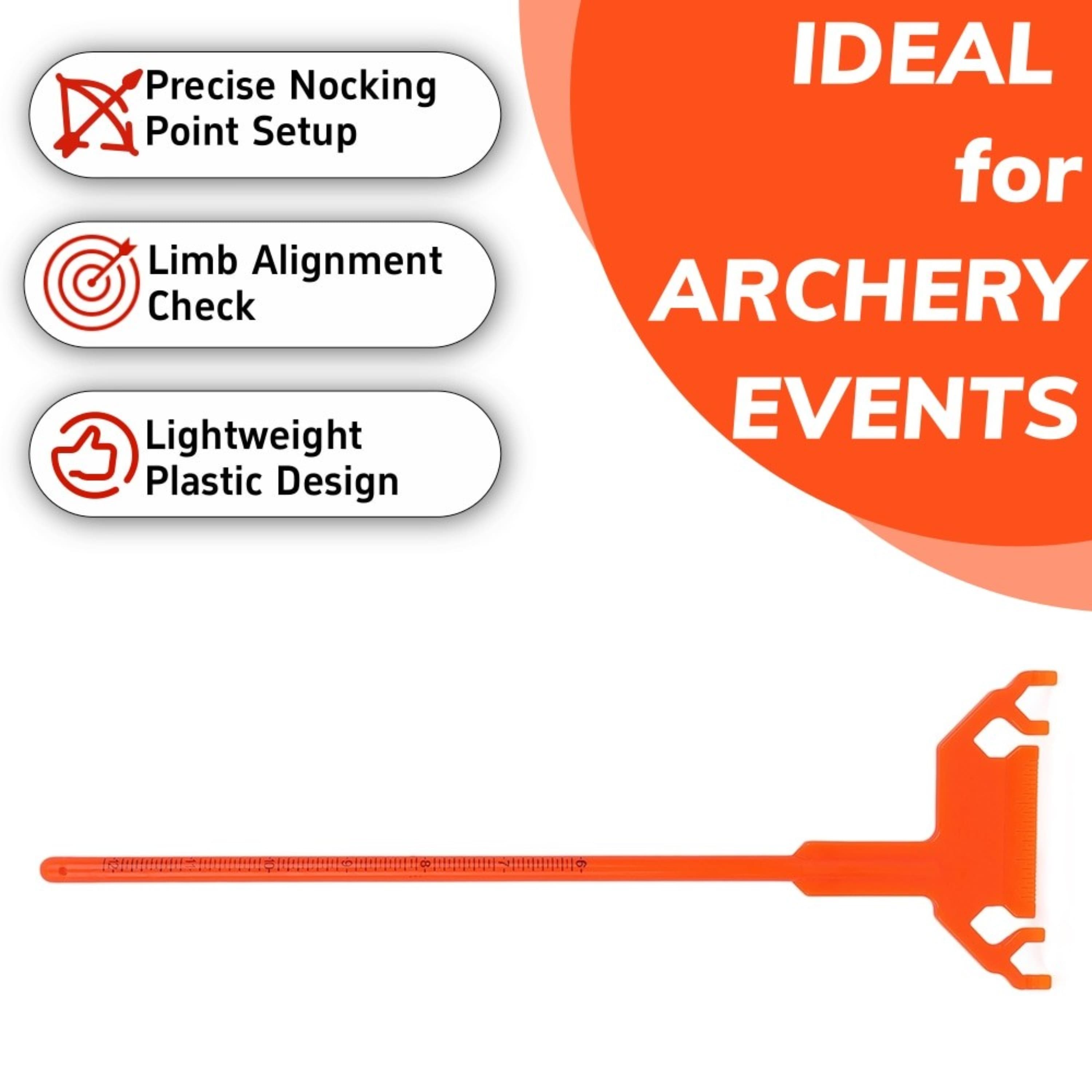Beyond brace height, it is indispensable for setting your nocking point consistently and checking limb alignment. By ensuring your nock is level with your arrow rest and that both limbs are symmetrically aligned to the string, you eliminate variables that cause erratic arrow flight. Made from bright orange, durable plastic, this lightweight tool is a must-have in any archer's maintenance kit for both initial setup and routine checks.