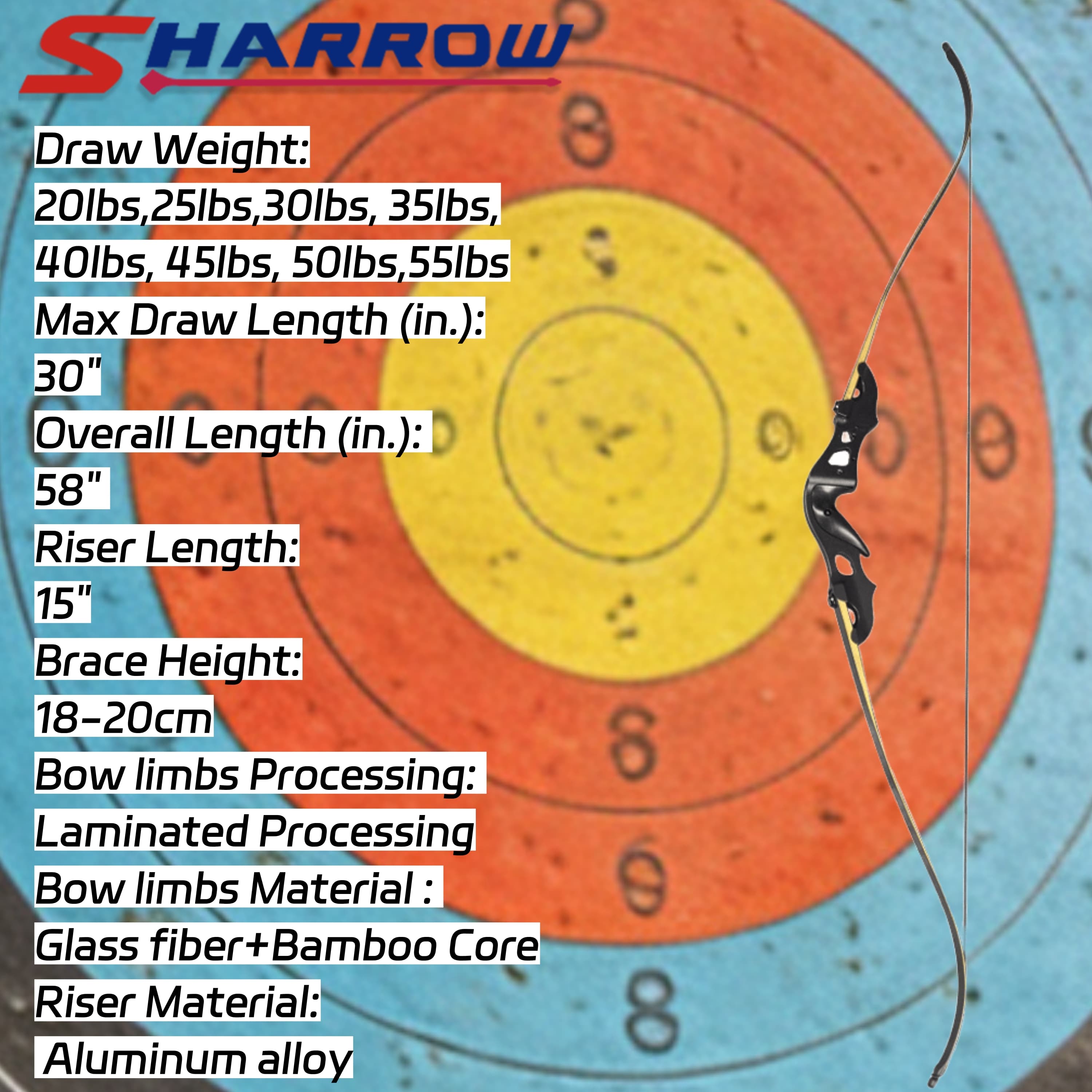 • Comfortable Design: 60-inch bow length with 57-inch string and 7–8 inch brace height delivers smooth draw and consistent accuracy.
