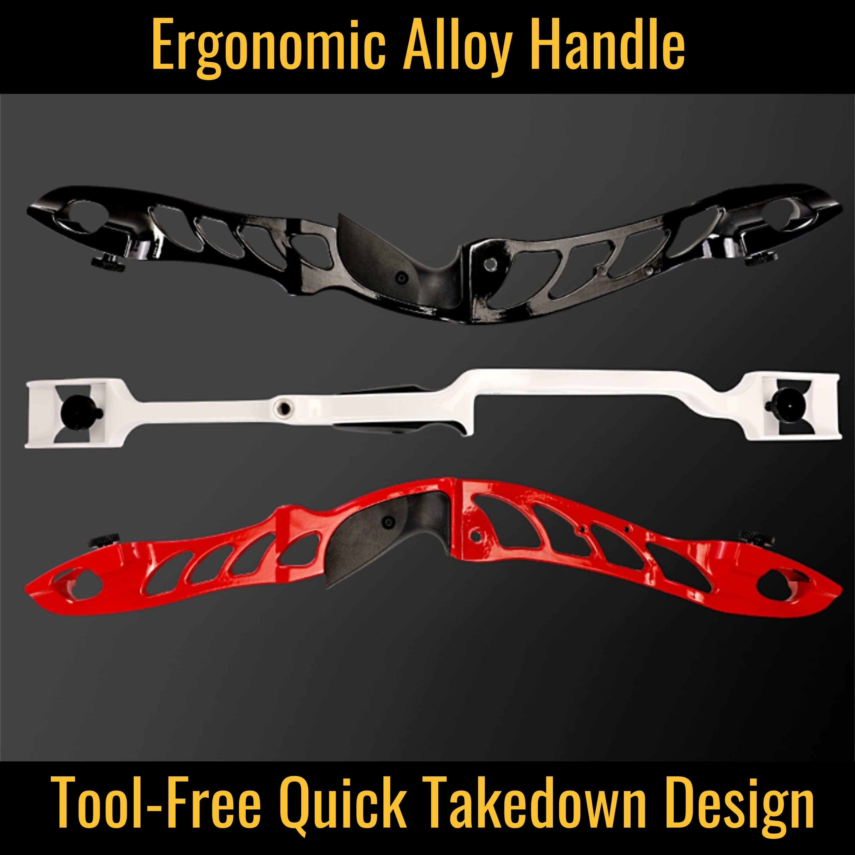 Featuring a durable alloy construction finished with high-gloss plastic, this handle is built for long-lasting use. Its ergonomically contoured grip fits naturally in the hand, offering superior comfort and control during every draw.
