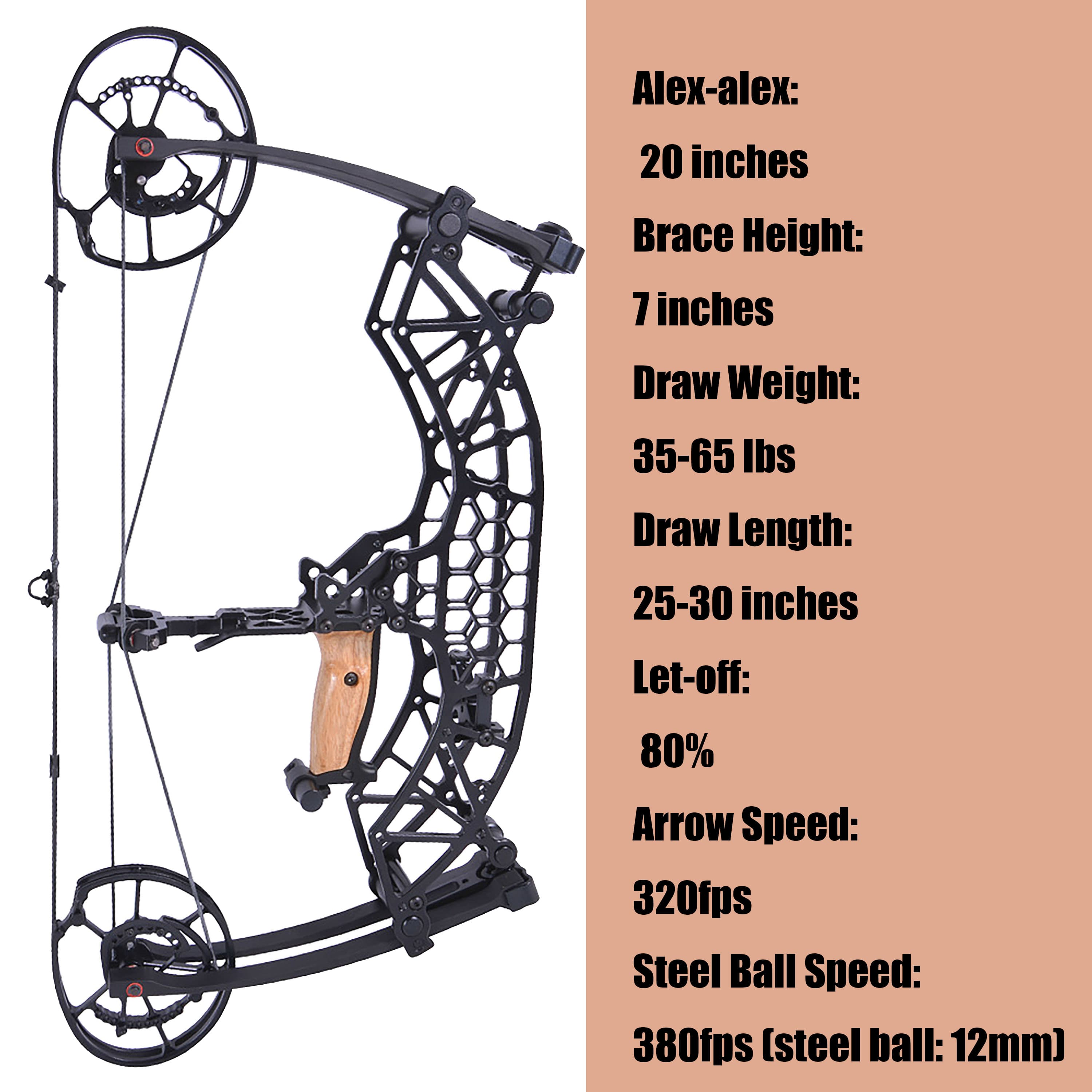 Wide, Seamless Adjustability – Offers a continuously adjustable draw length of 25-30 inches and draw weight of 35-65 lbs, allowing users to fine-tune the bow effortlessly for maximum comfort and precision.