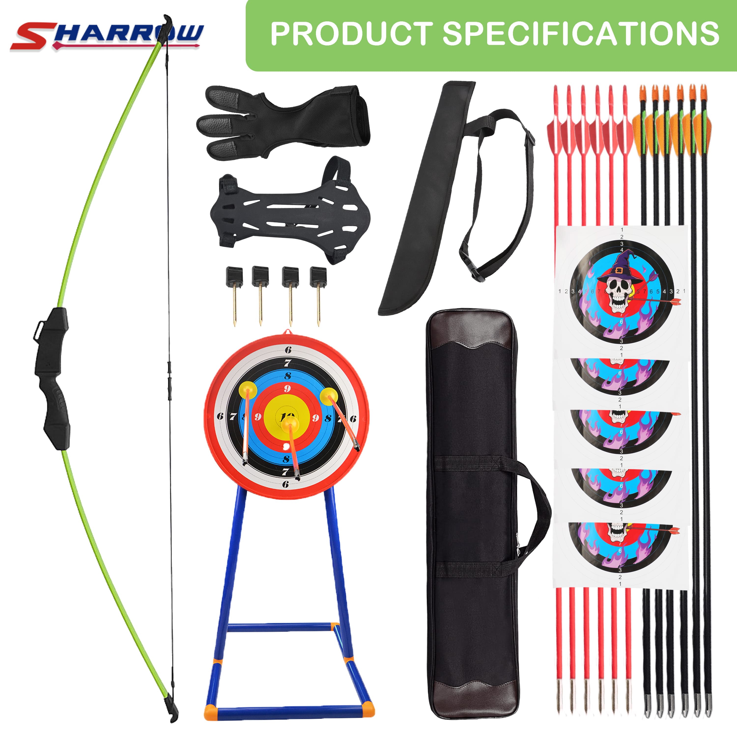 • Fun & Complete Beginner's Kit: The set includes not only the bow, arrows, and basic protective gear but also a free-standing vertical target and multiple target faces, turning practice into an engaging game that boosts a child's participation and sense of achievement.